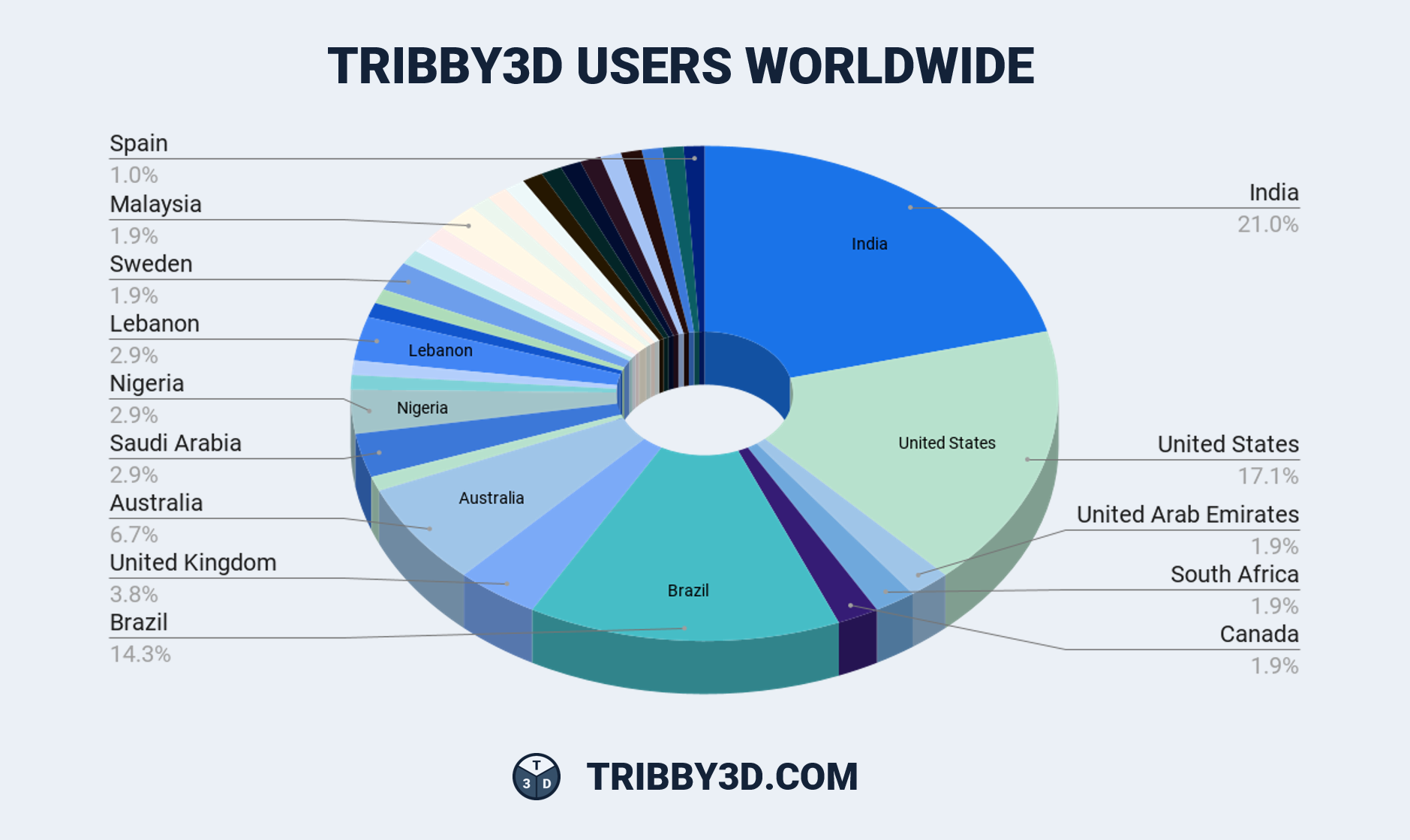 Pretty amazing to see the diverse adoption of Tribby3d as a tool for structural engineers and designers worldwide. Winners are India 🇮🇳 (21%), United States 🇺🇸 (17%) and Brazil 🇧🇷 (14%). Congrats all, and keep automating mundane engineering tasks!